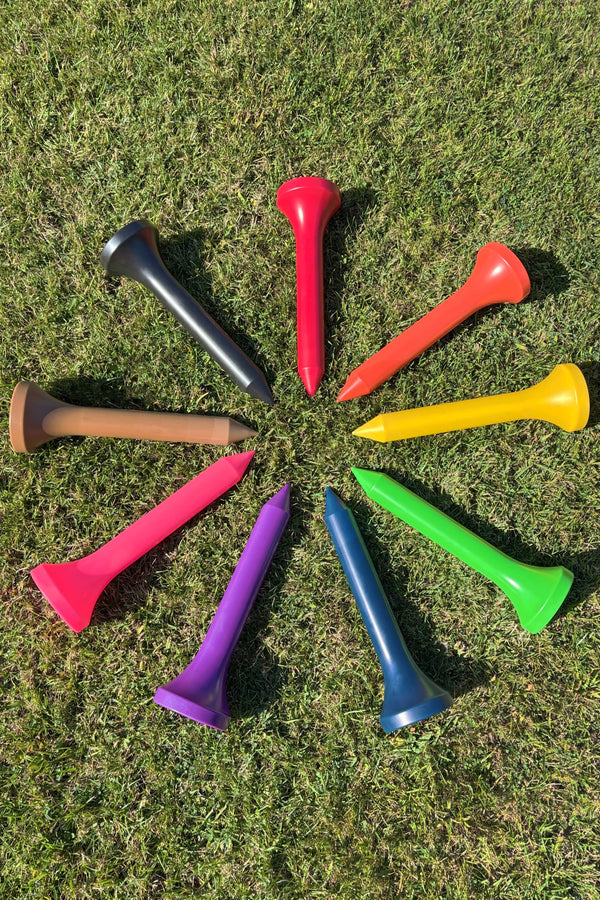 There are endless ways to display our products, however the most popular way to display the assembled golf ball and tee set is by staking the pointed end of the tee into the ground outdoors, just as you would a normal golf tee.